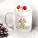 Ein Cavalier König Charles Spaniel, der eine Weihnachtsmannmütze für die Ferienzeit trägt, wird in einem wirklich bezaubernden Gemälde gezeigt. Ein fantastisches Geschenk für einen fantastischen Hundeliebhaber. Genießen Sie die herrliche Tasse, während Sie unterwegs warme Getränke wie Lattes, Kaffee, Tee und heiße Schokolade genießen.