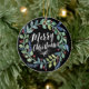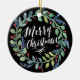 Watercolorwreath-WeihnachtsFoto-Schwarzes Keramik Ornament