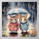 Watercolour Mice in The Rain Poster