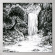 A free flowing sketch of nature's drain, a waterfall in the woods. Original ink drawing by Paxdomino.