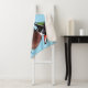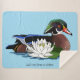 Eine Holzente im Wasser mit weißer Wasserlilie neben dem sind zum Kotzen in blauer Umgebung