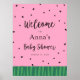 Herzlich willkommen in einer Babydusche mit diesem lustigen Poster, das mit Wassermelonen Samen und einem rosa Hintergrund ausgestattet ist. Fügen Sie den Ehrengast mit dem Namen, dem Duschdatum und dem persönlichen Willkommenstext unter Verwendung der angegebenen Felder hinzu.