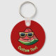 Niedlicher Cartoon. Wassermelone Slice mit Sonnenbrille. Benutzerdefinierte Hintergrundfarbe. Zwei benutzerdefinierte Textfelder im Kreis.