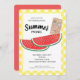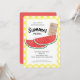 Die Picknick-Einladung dieses Unternehmens zeigt eine Grafik von Wassermelone und Silberwaren mit einer hellgelben Gingham-Grenze.