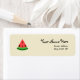 Ein Adressetikett mit einer Darstellung eines dreieckigen Wassermelonschnittes mit vier Samen. Personalisieren Sie Ihren Namen und Ihre Adresse in schwarz rechts. Suchen Sie nach passenden Artikeln in Jill's Paperie.