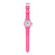 Diese Uhr zeigt eine leckere Cartoon-Illustration einer Wassermelone-Scheibe auf blauem Hintergrund.
