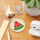 Ein Schlüsselanhänger mit einer Darstellung eines dreieckigen Wassermelonschnittes mit vier Samen. Suchen Sie nach passenden Artikeln in Jill's Paperie.