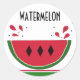 Eine große Scheibe saftig roter Wassermelone. Drei schwarze Diamantkörner mit einer hellgrünen Rinde.