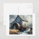A rustic watermill stands by a flowing stream, surrounded by tall grasses under a soft, cloudy sky. The wooden wheel and weathered exterior add a sense of timeless charm to the scene.