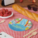 Lassen Sie sich bei einer Kindergeburtstagsfeier in einem Aquapark, einem Schwimmclub oder einem Pad mit dieser Papiertüte verwöhnen. Das Wasser schlängelt sich über eine hellgelbe Rutsche und stürzt sich in einen hellblauen Pool voller Schwimmbecken und Spaß an einem Sommertag. Verfügbar mit passenden Produkten.