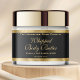 A waterproof cosmetics/body butter jar label featuring a faux gold foil border and black background. This label measures 8.25 inches by 1.75 inches (209 mm by 44 mm) and is suitable for jars with a diameter of 2.6 inches (66 mm) or more and a label height area of at least 2 inches (50mm). Most 8 oz (240 ml) and 16 oz (480 ml) jars fit this description, but check the jar specifications to be sure. This label makes a great choice for packaging beauty products that require larger labels like sugar scrubs, body butters, and thick lotions and creams.