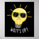 Watt up Funny Light Bulb Pun Dark BG Poster