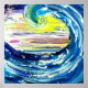 Wave Abstraction von Fiona. Farbenfrohe Malerei auf der Leinwand mit hellen Farben: Blau, Grün, Gelb und Rosa. Wave Abstraction von Fiona farbenfrohe Malerei kann für die Innengestaltung für Ihre Zuhause, Kleidung oder Zubehör verwendet werden.