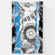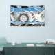 Make a bold impact with this 3' x 5' Vinyl Banner featuring Wave Mechanism – Abstract. The artwork presents a symmetrical composition where circular elements resembling gears repeat vertically, evoking the rhythm of a contemplative machine. At the center, a wavy blue band cuts through the structure, breaking rigidity with fluidity — like a digital river or expanding frequency.