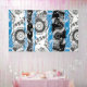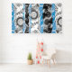 Make a monumental statement with this 6' x 10' Vinyl Banner featuring Wave Mechanism – Abstract. The artwork presents a symmetrical composition where circular elements resembling gears repeat vertically, evoking the rhythm of a contemplative machine. At the center, a wavy blue band cuts through the structure, breaking rigidity with fluidity — like a digital river or expanding frequency.