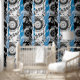 The Wave Mechanism – Custom Wallpaper transforms abstract art into immersive interior design. Symmetrical circular motifs evoke gears in motion, while the bold blue wave band flows across the center, balancing structure with fluidity.