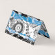 The Wave Mechanism – Custom Horizontal Tent Fold Business Card elevates professional identity with abstract art and practical design. Symmetrical circular motifs suggest gears in motion, while the bold blue wave band flows across the center, balancing structure with fluidity.