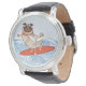 Wave reitet Hund auf Surfbrett mit Happy Mops Armbanduhr