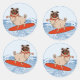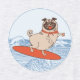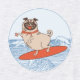 Wave reitet Hund auf Surfbrett mit Happy Mops Etiketten