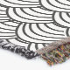 Diese Decke hat ein Art-Déco-Design von schwarz gekrümmten Linien in einer Dreieck-Form auf einem Feld von Weiß wiederholt über das Design.