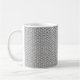 Diese Tasse hat ein Art-Déco-Design von schwarz gekrümmten Linien in einer Dreieck-Form auf einem Feld von Weiß wiederholt über das Design.
