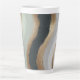 Eine handgezeichnet Abbildung von ruhigen Wellen mit weißen, beigen und hellen Minzwellen. Die metallischen Farben sind mit Pinselstrichen im Hintergrund sauber. Die sichtbare Textur und die Linien sind leicht gewellt.