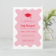 Wavy Retro Abschluss Einladungskarte. Extravagante Einladung in Rosa und Rot.