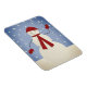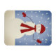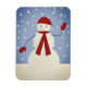 Ein schwungvoller Schneemann mit einem roten Hut, Fäusten und Schal.