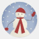 Dieses Produkt hat einen schwungvollen Schneemann in einem roten Hut und rote Fäustlinge.