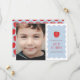 Feiern Sie den Abschluss Ihres Kindes im Kindergarten mit dieser modernen und charmanten Abschlussanzeige. Die Vorderseite der Karte zeigt eine süße, halbtönige Apfelabbildung mit einem überlagerten Text "Jahrgang (Jahr)". Unter der Abbildung steht die Nachricht "der Augapfel unseres Auges" sowie Platz für den Namen Ihres Kindes und ihrer Schule. Der Text und das Design sind auf einem soliden blauen Hintergrund platziert, mit einem spielerischen, weißen wellenförmigen Rahmen. Diese Anzeige bietet auch Platz für ein großes Kundenfoto. Die Rückseite der Karte zeigt ein koordiniertes Halftone-Apfelmuster.