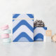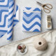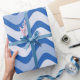 Die Wellen sind in Blau und Weiß gehalten. Sie bestehen aus kurvenförmigen Linien, geometrischen Formen, die völlig abstrakt, aber auch von der natürlichen Welt inspiriert sind. Ein sauberes und stilvolles Design.