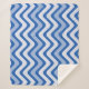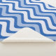 Die Wellen sind in Blau und Weiß gehalten. Sie bestehen aus kurvenförmigen Linien, geometrischen Formen, die völlig abstrakt, aber auch von der natürlichen Welt inspiriert sind. Ein sauberes und stilvolles Design.