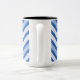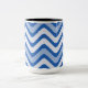 Die Wellen sind in Blau und Weiß gehalten. Sie bestehen aus kurvenförmigen Linien, geometrischen Formen, die völlig abstrakt, aber auch von der natürlichen Welt inspiriert sind. Ein sauberes und stilvolles Design.