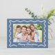 Dieses Foto Weihnachtskarte mit einer rückwärts verlaufenden, weißen Grenze auf einem staubblauen Hintergrund bietet Platz für 3 Fotos und eine persönliche Nachricht.