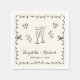 Retro-inspirierte helle Servietten für Ihre Verlobungsfeier, Probe Dinner, Empfang, usw., mit einem trendigen, gewölbten Rahmen mit Kokettenbögen, skurrilen handgezeichneten Herzenzeichnungen und toastenden Champagnergläsern und den Namen von Braut und Bräutigam in einer lustigen, spielerischen Handschrift.