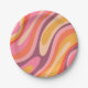 Wavy Loops Groovy Retro Abstraktes Muster Pappteller