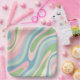 Wavy Schleifen Retro Abstraktes Muster Pastellblau Pink grün. Trippy 60er y2k psychedelisches dänisches Pastelldesign. Einzigartige künstlerische coole trendige zeitgenössische, boho wavy Warp Groovy wirl art; sanfte Farben mit einem beruhigenden, fröhlichen Ambiente. Von Kierkegaard Design Studio.