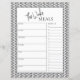 Minimaler Text-Script-Essensplaner mit einer Einkaufsliste, wo Sie Ihre Einkaufsbedürfnisse feststellen können. Der minimale Essensplaner enthält einen Notenbereich im Hintergrund, wo Sie zusätzliche Erinnerungen hinzufügen können oder Dinge, die Sie nicht verpassen möchten. Die Planung der Mahlzeiten ist eine gesunde und nützliche Methode, Ihre Mahlzeiten für die Woche zu kartografieren. Doch manchmal kann es schwierig sein, sich Zeit zu nehmen, um eine Vorlage zu schreiben, wie das auf sich allein gestellt aussehen würde. Aus diesem Grund habe ich eine Vorlage für die wöchentliche Speisenplanung und die Lebensmittelliste erstellt.