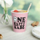 Wavy ein glückliches Babe Preppy Lächeln pink 1. Geburtstag Papier Tasse.