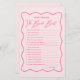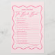 Feiern Sie mit dem "Personalisierten Wavy Pink Brautparty Who Knows the Bride Best"-Spiel, perfekt für die Liebe ist in der Luft Brautparty-Ideen und Valentins Brautparty-Ideen. Mit dem Brautparty des Valentiner Spiels ergänzt dieses Spiel alle Ideen aus rosa Brautparty oder rosa Brautparty. Ideal, um das Thema des Knotens zu küssen, oder das Thema des Knotens zu küssen, ist es eine lustige Ergänzung zum Küssen der Brautparty-Abschiedsfeiern, Liebe ist im Brautparty-Thema Blüte, oder ein hübsch in rosa Junggeselinnen-Abschied und rosa Junggeselinnen-Abschied.