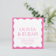 Eine rosa Hochzeitseinladung mit einem gewellten Rand.