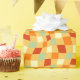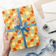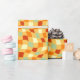 Ein wunderschönes Verpackungspapier mit einem durchsichtigen, ästhetischen Schachbrett-Muster aus den 70er Jahren in einer Farbpalette aus Orange und Gelb in 70er. Ideal für einen Themenabend der 70er Jahre oder Retro-Bachelorette.