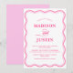 Wavy Retro Rosa Hochzeit Einladung