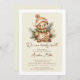 Welcome your little one with cozy charm using this “We Can Bearly Wait” teddy bear baby shower invitation. This adorable winter-themed design features a soft watercolor teddy bear dressed in a knit hat and scarf, surrounded by pine greenery, pinecones, and warm neutral tones. The gentle cream background and elegant script font create a timeless, gender-neutral look — perfect for winter or woodland baby showers.