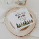 Watercolor pine trees and bear fall themed baby shower napkins.