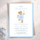 Celebrate a sweet new arrival with this timeless teddy bear baby shower invitation, featuring a charming watercolor teddy bear waiter dressed in soft blue with the playful phrase “We Can Bearly Wait.” Designed with a refined, storybook feel, this invitation strikes the perfect balance between whimsical and classic—ideal for a traditional baby shower, elegant luncheon, or cozy café gathering.