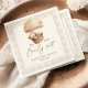Add a sweet touch to your celebration with these custom We Can Bearly Wait baby shower napkins. Featuring a watercolor teddy bear in a balloon basket, soft neutral tones, and a beige gingham border, this gender-neutral design is perfect for a cozy, teddy bear-themed baby shower.