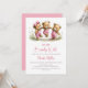 Celebrate the imminent arrival of your bundle of joy by inviting your friends and loved ones to your baby shower with this invitation featuring three adorable teddy bears wearing pink overalls playing jump rope.. The customizable text allows you to effortlessly add your name, date and time of the celebration, and the RSVP information. A variety of paper types and corner styles are available for your unique invitations, along with the option to download if you prefer a digital format.