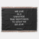 Wir leben in einem Universum, das auf das reagiert, was wir glauben. Diese spirituelle Zitatdecke basiert auf den Lehren des Gesetzes der Anziehung und Quantenphysik. Zitat und Kunstwerk von Corbin Henry.