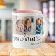 This 4-photo collage pink modern mug features the heartfelt message, "Great Grandma, we love you" with a cute heart. An ideal gift for your